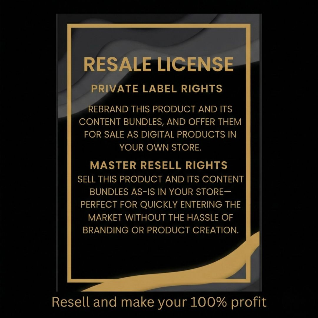 Resell products, modify content, add your branding, or bundle them into your own offers (license terms included).