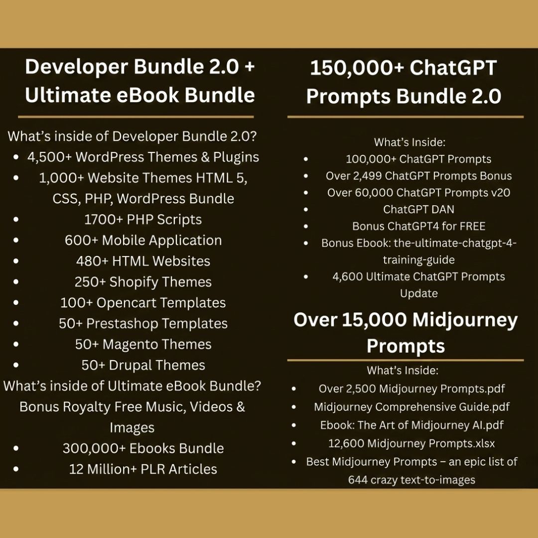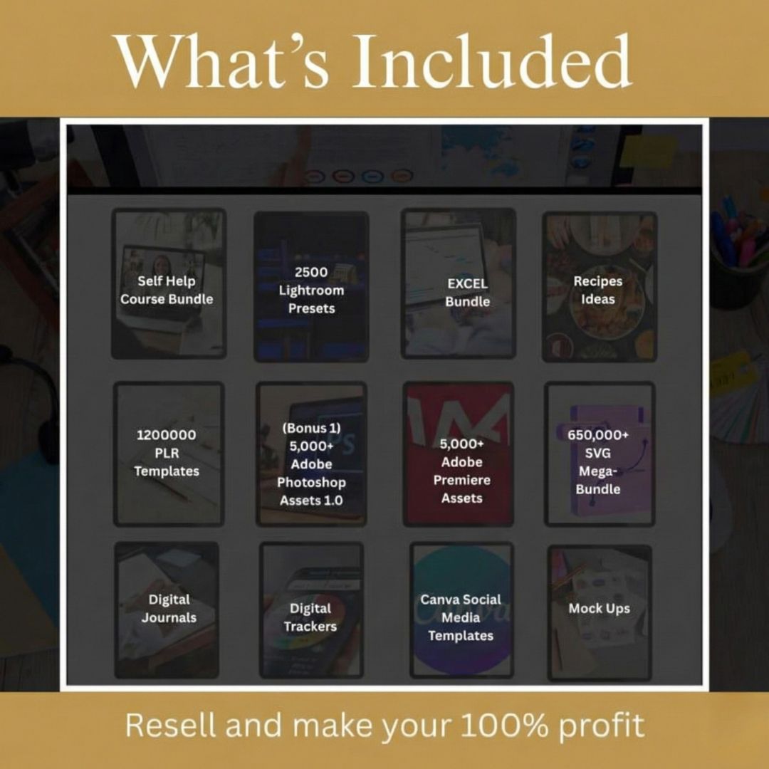 This mega collection includes digital products across multiple formats and niches, such as: